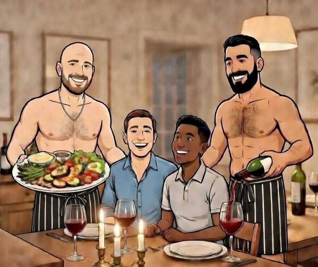 This is a legit meal service, with the twist only being the wardrobe (or lack of). But no, please no touching while I prepare the meal or while we serve as I really do focus on the cooking. Beyond preparing the meal in the buff, there is nothing else implied including any type of adult services.